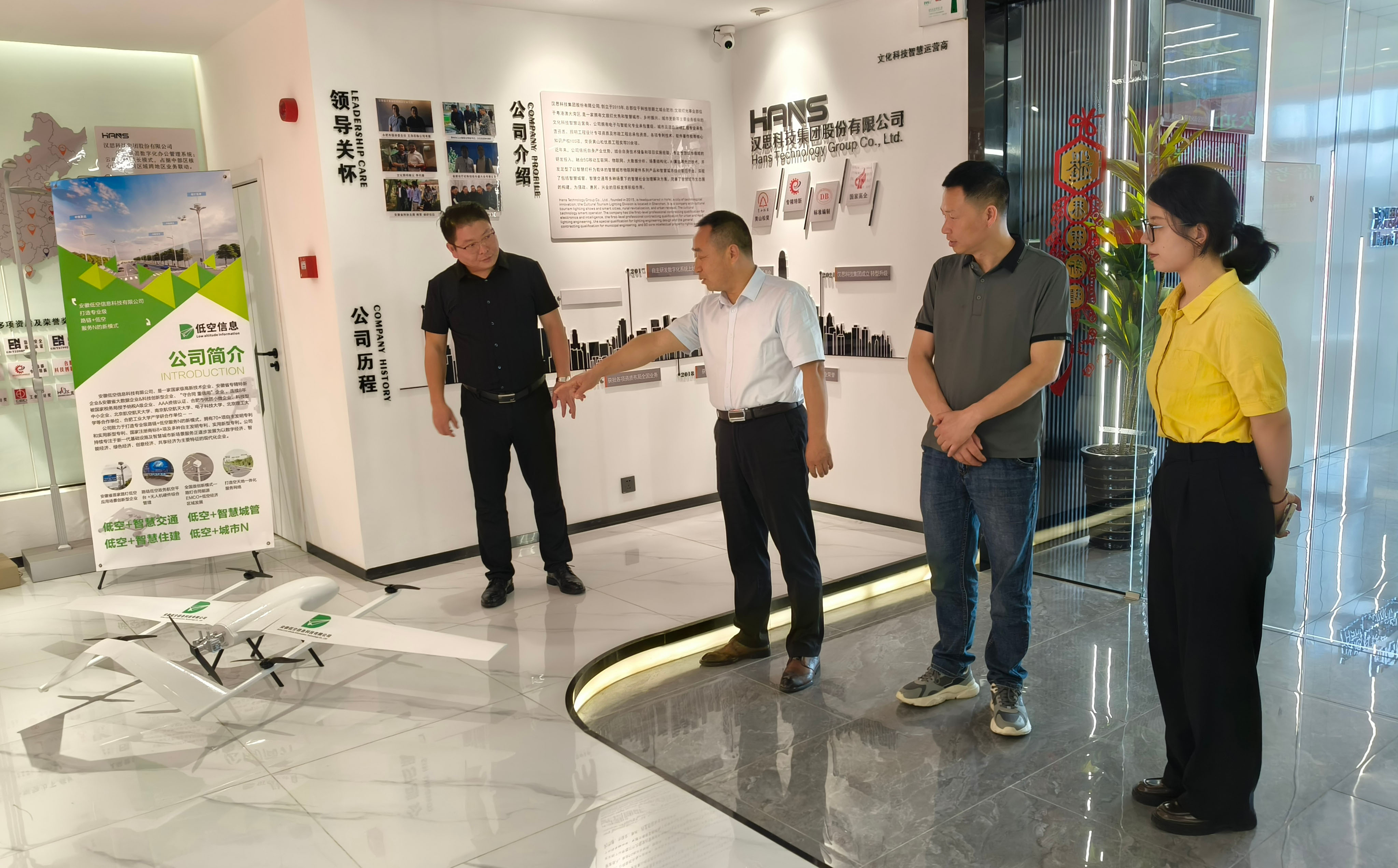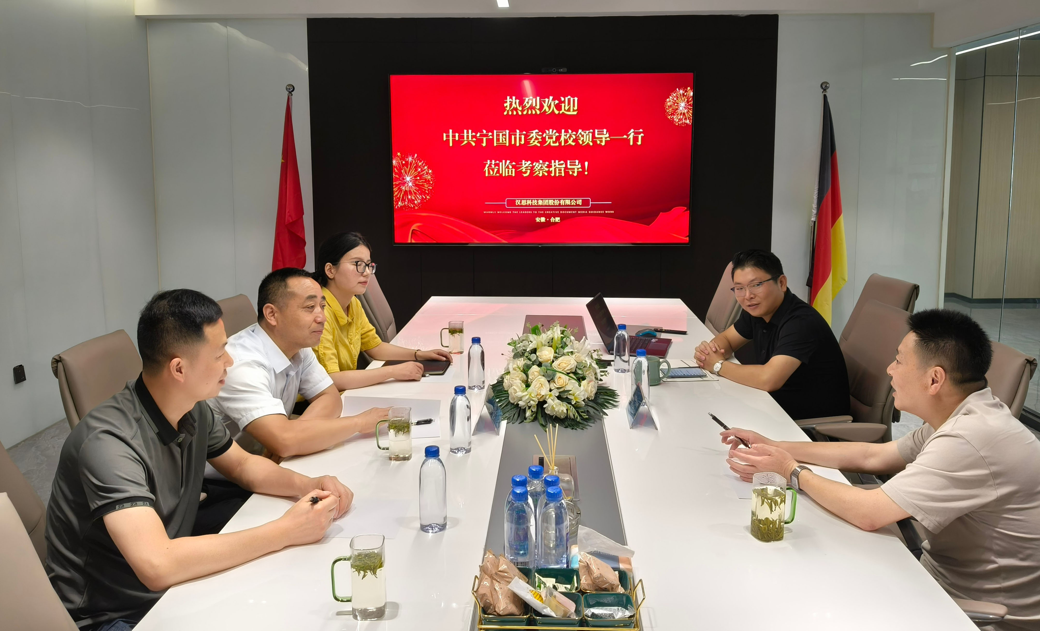 2025年5月22日,汉思科技集团股份有限公司(以下简称“汉思科技集团”)董事长、安徽低空信息科技有限公司总经理何庆亮先生与合肥市宁国商会秘书长辛卫兵先生,共同接待了中共宁国市委党校常务副校长杨德明先生、副校长王泽焕先生及副校长孙敏女士,并对他们的到来表示热烈欢迎。