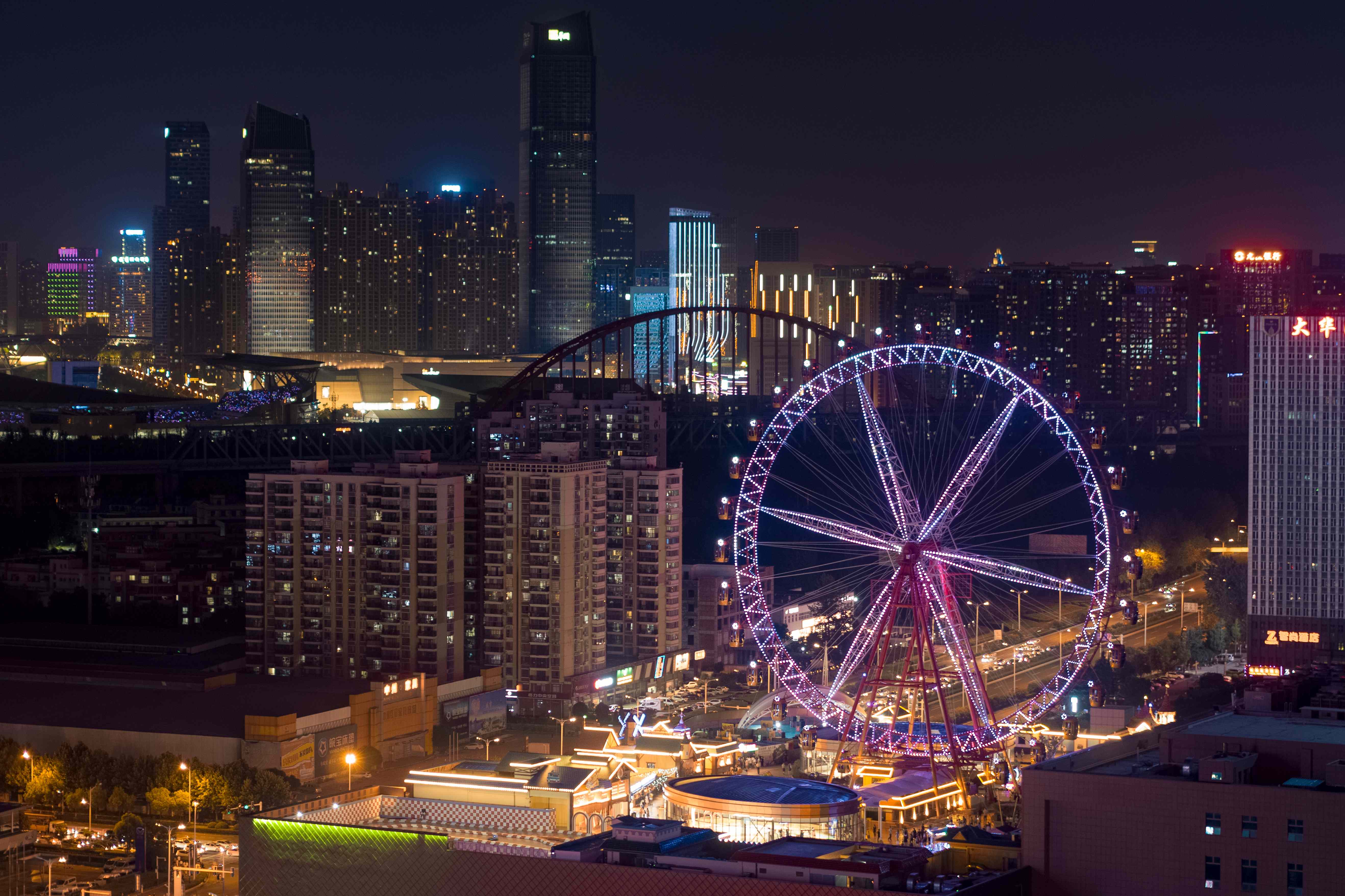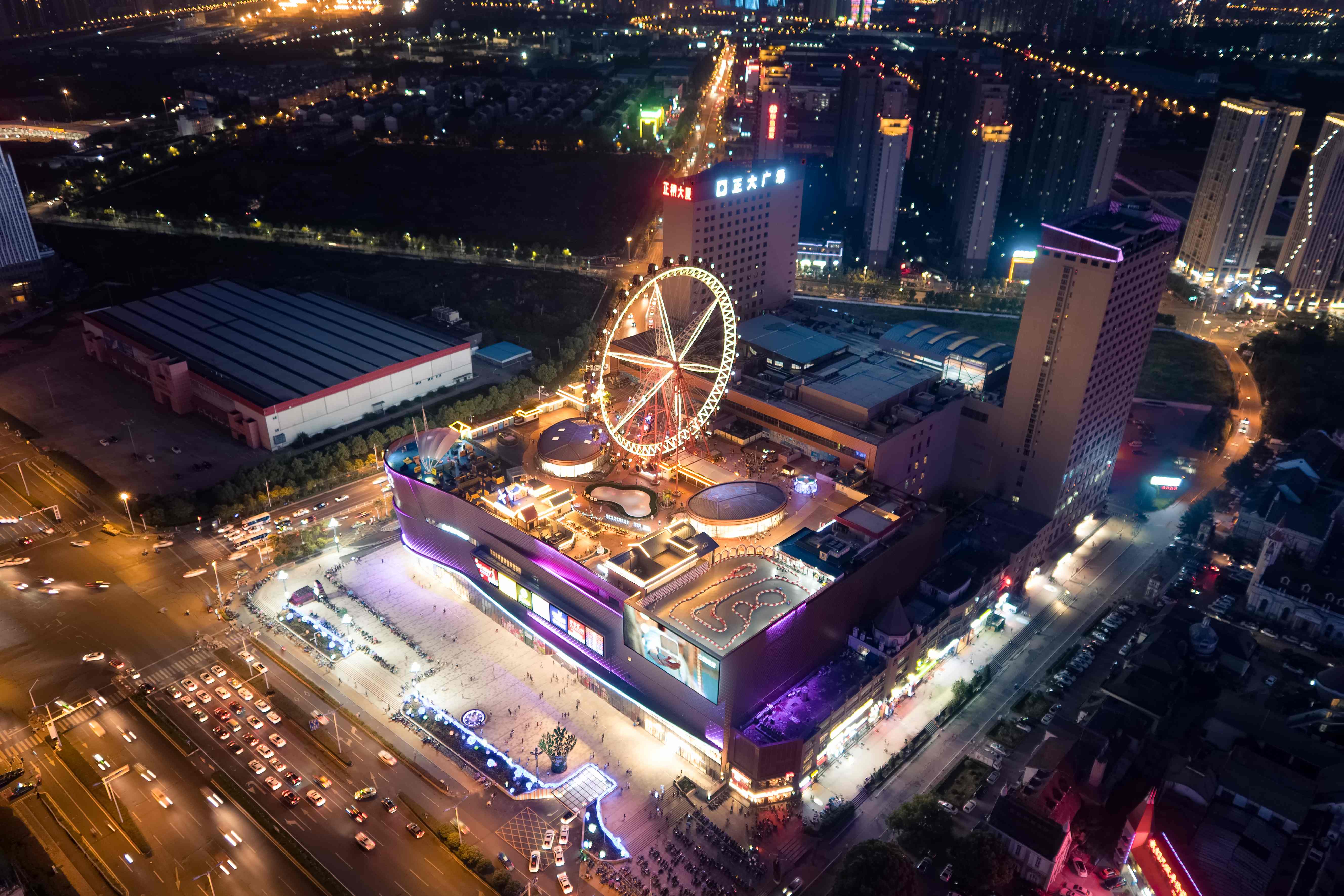 合肥正大国际广场(亦称正大广场)坐落于合肥经济技术开发区金寨路与芙蓉路交叉口,正大广场的标志性设施是位于 7 层屋顶的商业摩天轮——安徽首座商业穹顶式摩天轮,轮径 58.5 米,高 110 米,可 360°俯瞰合肥全景,已成为经开区乃至全市的网红打卡地,配套还有摩天轮主题乐园、空中花园、旋转大滑道等亲子娱乐项目。