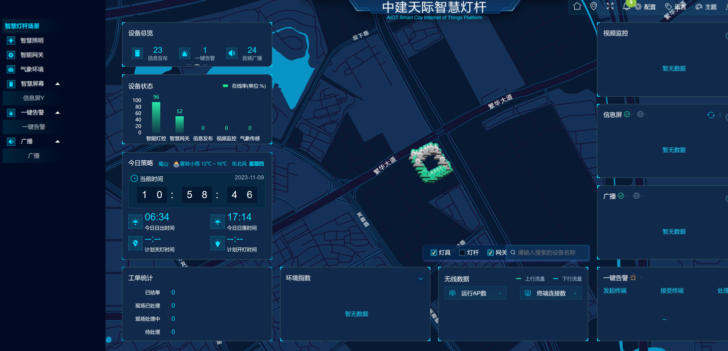 中建国际工程总部智慧垃圾桶、智慧路灯项目